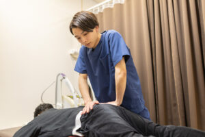 最初に筋肉を軽くほぐしていきます。そして骨盤矯正を施していき丁寧に調整していきます。すみれ接骨院のオリジナルの骨盤矯正は全く痛みがありませんので、ご安心ください。